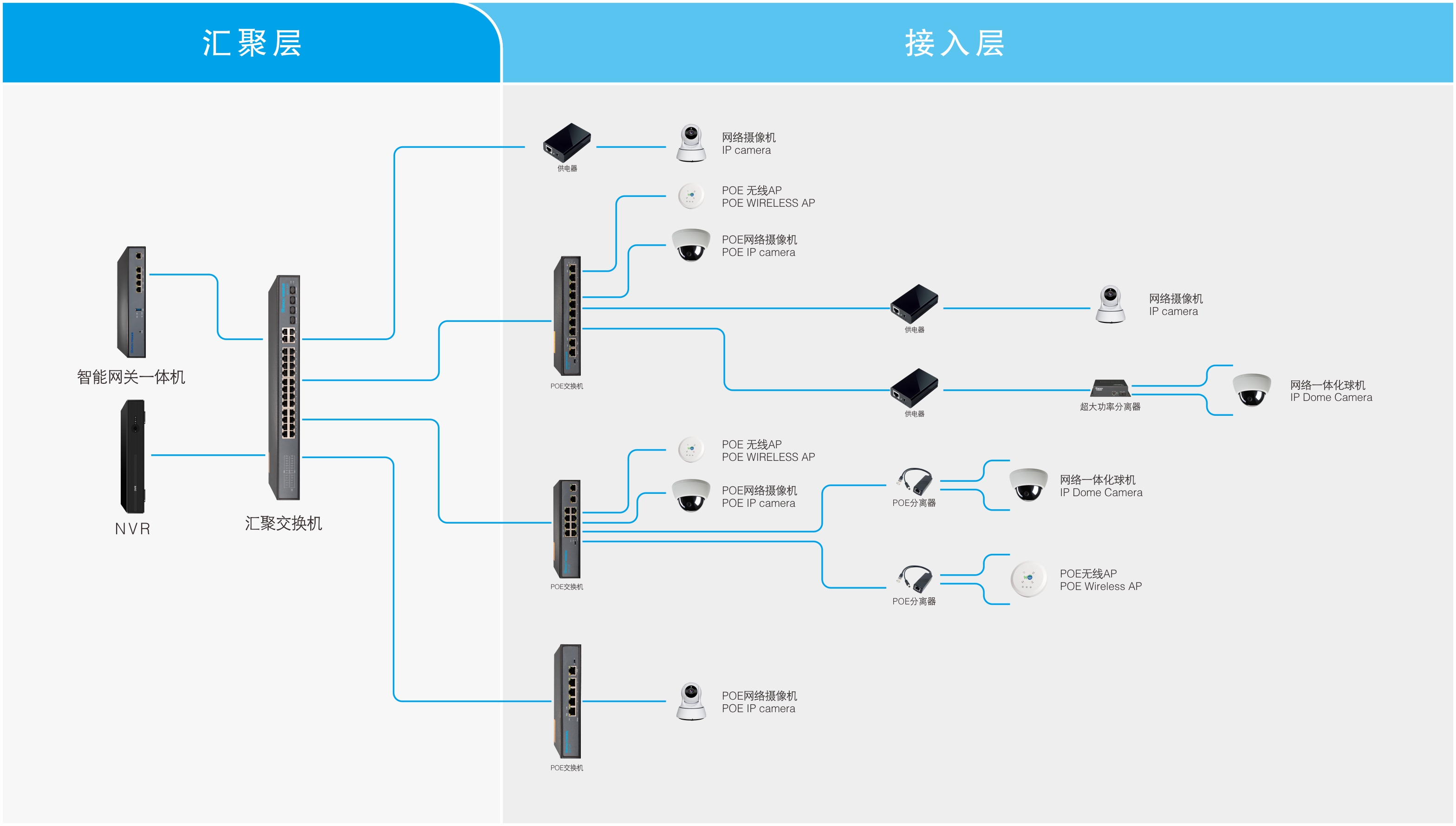 ◆支持通過超5類以上網線為網絡攝像頭、無線AP等設備供電