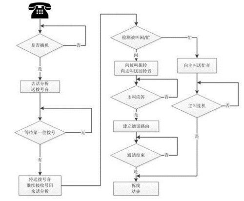 (4)遇忙等待:指座機打一個電話遇到忙音,通過一個定義的按鍵進行遇忙等待,待目標號碼不忙時,自己電話振鈴,接起同時撥通不忙的目標號碼,并與之通話。