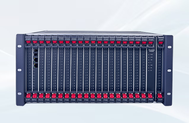 5U高集成度設備,采用19槽插板式設計,全表面貼裝工藝,工業級設計。16個通用業務插槽,1個特殊槽位,光接入/E1接入, 單框實現512路電話,最大可擴展至2560路??山尤攵喾N功能模塊配合使用,組網方式靈活、業務豐富??山y一接入云平臺管理, 實現設備集中網管,遠程監控和維護。