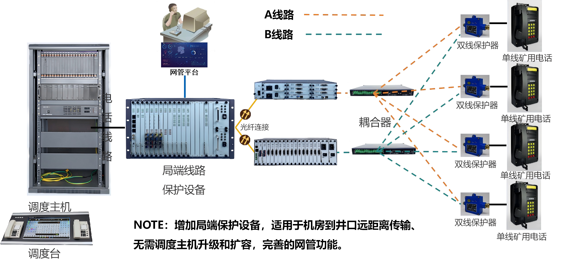 針對(duì)上述改造現(xiàn)狀及痛點(diǎn),申甌通信設(shè)備有限公司推出了礦用電話單回路系統(tǒng)升級(jí)為雙回路系統(tǒng)完整解決方案,具體方案如下: