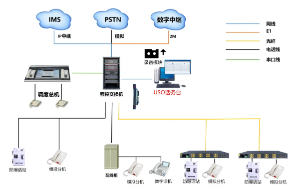 部署申甌SOC8000數字程控調度機,模擬中繼對接外線,帶錄音功能;